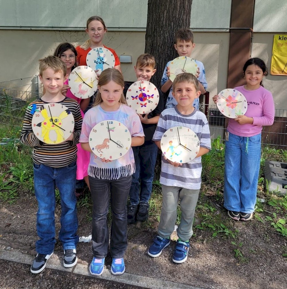 | Der HSE beteiligte sich am 02.08. beim Ettlinger Ferienpass. Das Motto lautete dieses Jahr: „Die Uhrzeit im Blick“. Acht Jugendliche waren tatkräftig und sehr interessiert bei der Arbeit. Nachdem die Holzuhren verteilt wurden und die Ziffereinteilungen in den richtigen Abständen markiert waren, wurden die Ziffern in den verschiedensten Farben angemalt. Danach konnte sich jeder Jugendliche ein Motiv aussuchen oder selbst eines gestalten, das auf das Zifferblatt gemalt wurde. Nach kurzer Trocknungszeit wurden nun die Ziffern anhand der Markierungen aufgeklebt. Jetzt konnte das Uhrwerk montiert werden und alle Uhren tickten zur gleichen Zeit. Jede Uhr war ein Unikat. |