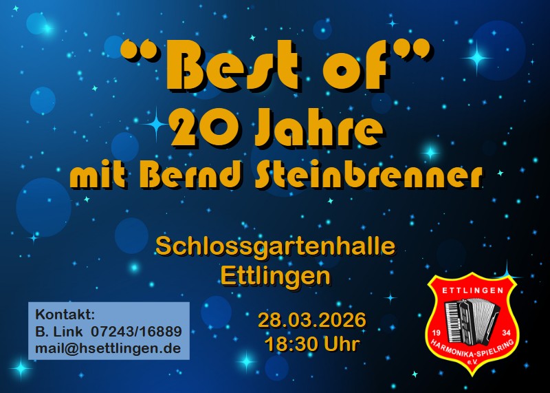 Konzertankündigung des Harmonika-Spielring Ettlingen e.V. "Best of" 20 Jahre mit Bernd Steinbrenner