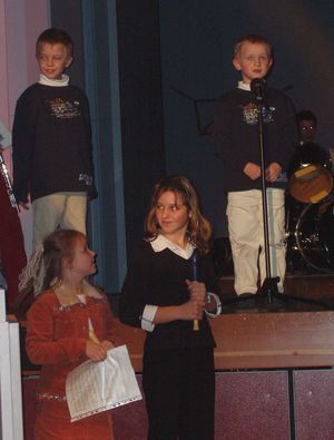 | Während das musikalische Weihnachtsprogramm mit "Rudi Rentier" fortgesetzt wurde, verabschiedete sich St. Nikolaus. Nach dem Stück "Air" verlas Monika Link eine Weihnachtsgeschichte "Vom Engel, der aus den Wolken fiel".