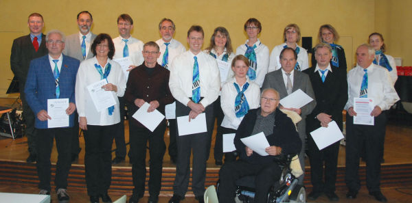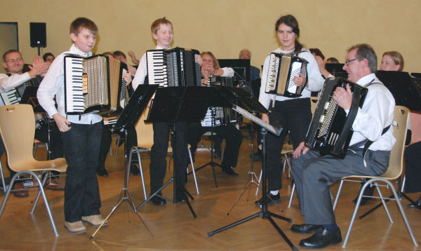 Das musikalische Programm ging mit den Stücken "Ballade pour Adeline" und "Simon and Garfunkel" weiter. Die Verbandsehrung vom Deutschen Harmonika-Verband - Bezirk Mittelbaden - übernahm der Stellvertretende Bezirksvorsitzende Thomas Gerstner. Er konnte 24 Ehrungen vornehmen, da der Deutschen Harmonika-Verband seine Ehrungsrichtlinie ab dem 01.01.2010 den Ehrungen vom "Blasmusikverband" angelehnt hat. |