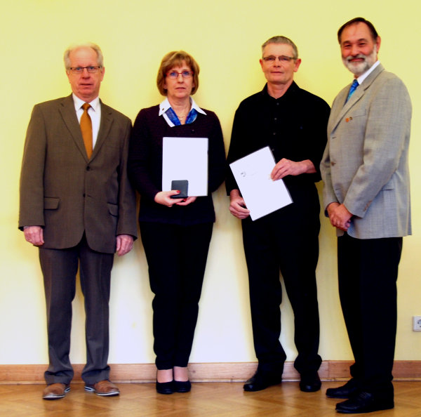 Herr Manfred Kappler konnte für 20-jähriges musikalisches Engagement Rudolf Brunner mit der „DHV-Ehrennadel in Silber“ mit Urkunde sowie Monika Link für 30-jähriges ehrenamtliches Engagement mit der „Ehrenmedaille in Silber“ mit Urkunde ehren. |