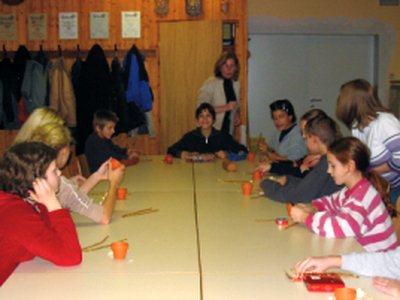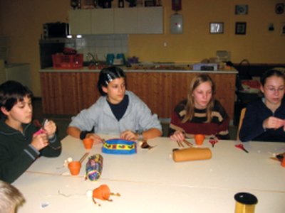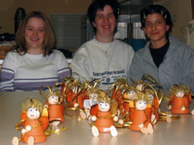 | Wie in jedem Jahr, trafen sich auch 2003 die Kinder und Jugendlichen aus dem Unterricht sowie des 2. Orchester zum Jugendabschluss. Die Jugendleitung hatte zum Basteln eingeladen und so wurden aus den vorbereitetem Bastelmaterial wunderschöne Tontopfengelchen gebastelt. Anschließend gab es noch für alle Pizza und es wurde ordentlich geschlemmt. | |