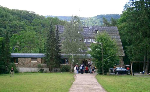 | Am Freitag, 09.07.2004 ging es endlich los. Um 15 Uhr fuhren wir mit 40 Personen in Richtung Brühl ins Phantasialand. Nach ca. vier Stunden Fahrzeit kamen wir in Altenahr an der Ahr an, wo sich unsere Unterkunft befand. Doch bis zur Jugendherberge musste man nun noch 10 Minuten zu Fuß durch den Wald gehen. Also marschierten wir mit unserem Gepäck den Weg entlang durch den Niesel-Regen. Endlich angekommen wurden dann schnell die Zimmer verteilt und im Anschluss daran gab es ein schmackhaftes Abendessen. Nun hatte jeder Zeit, das zu tun, worauf er Lust hatte. Einige spielten Gesellschaftsspiele, andere Tischtennis. |