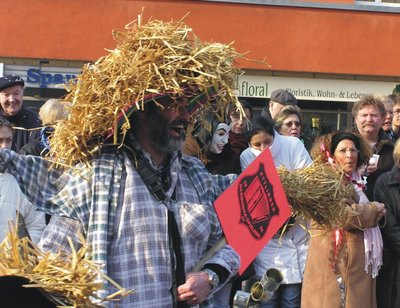 Bei herrlichem Sonnenschein präsentierte sich der HSE den am Straßenrand wartenden und gespannten Umzugsbesuchern. Jede Vogelscheuche war auf ihre Art und Weise voll von Überraschungen. Nach dem Umzug ging die Gruppe in den Probenraum. Bei Getränken und Berliner machte man sich schon wieder Gedanken für den nächsten Rosenmontagsumzug. |